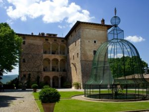Ворота разъезжаются… Перед вами — замок, превращенный в украшенный ренессансными лоджиями дворец 16-го века, рядом с ним — собор (тоже 16-й век) и бывшие стойла 17-го века, теперь переоборудованные в комнаты для гостей. Все здания — в саду, полном холеных деревьев и старинных статуй. Лепечет струящаяся в бассейн вода. А в центре — напротив церкви — фонтан, накрытый полуовалом, скованным из железных лент. «Это — клетка, — скажет вам маркиз Риччи, — Сделана для птиц, но птиц мы в ней не держим. Клетка говорит птицам: „Как хороша свобода! “». Раскрытая клетка символизирует отношение маркиза Риччи к истории — он любит освобождать ее пленников.