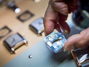 модель с циферблатом, выполненным из многоцветных слоев перламутра,