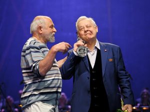 На сцене Театра им. Евгения Вахтангова чествовали не только достижения сезона, но и вручали почетные награды: так, приз «За долголетнее и доблестное служение театру» достался народной артистке России, художественному руководителю Московского театра музыки и поэзии Елене Камбуровой, а Олег Табаков был отмечен наградой «За беззаветное служение театру и за лучшую мужскую роль театрального сезона 2014-2015 г.».