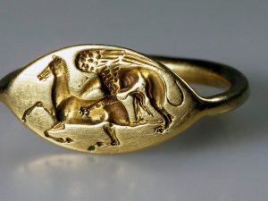 В первую очередь это прослеживается среди амулетов и символов, таких, как, например, оберег от злых сил из Карфагена — чем не прикольная серьга с подвеской в слегка даже панковском стиле — или вырезанные из горного хрусталя фигурки животных, созданные во II тысячелетии до нашей эры — сплошное умиление и одновременно изысканность, если посмотреть на них сегодня. То же относится и к графическим изображениям символов, как, например, узел Геракла, популярный мотив в Египте и эллинистической Греции, или солярные, растительные элементы украшений шумерской цивилизации — все они кажутся абсолютно носибельными и в наши дни. Кольца-змеи, браслеты с головами львов, дошедшие до нас из античности, кольца со щитками для печатей и перстни с инталиями и камеями вовсе не выглядят устаревшими, а часто даже представляются довольно актуальными.