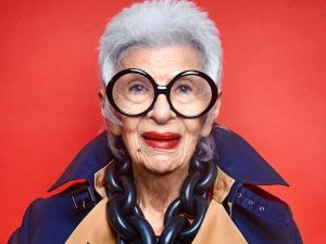 Мир моды и искусства знаком Айрис Апфель не понаслышке: в 1950-х годах она вместе с мужем открыла текстильную компанию Old World Weavers, занимавшуюся реставрацией старинных тканей. Ее основными клиентами были музеи и коллекционеры, но среди заказчиков также значился Белый дом — говорят, она принимала участие в реставрационных работах при девяти различных президентах! Миссис Апфель всегда любила необычные дизайны и изделия, балансирующие на грани эксцентрики, благодаря чему прославилась как одна из самых стильных женщин современности. В 2009 году в Музее костюма при Метрополитен-музее прошла выставка ее нарядов, которая затем экспонировалась в других штатах. В одном из интервью она признавалась, что ее гардероб занимает несколько комнат («Мой гардероб растет, а талия — нет») и в нем даже есть платье, которое она надевала на первое свидание с мужем (для справки: они прожили душа в душу более 67 лет!).