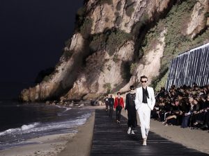 Показ мужской коллекции Saint Laurent весна-лето 2020. Главным гостем стал амбассадор бренда, 54-летний Киану Ривз: молчаливого, угрюмого, но бесконечно харизматичного актера, с грустными фото которого поклонники обожают делать мемы, не так часто можно встретить на светских мероприятиях, а потому появление Киану на пляжной презентации стало настоящим событием. Кроме того, Ривз появился на мероприятии со спутницей — лос-анджелесской художницей Александрой Грант, с которой актеру приписывают роман.