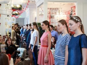 Утро в столичном ресторане Dr. Живаго выдалось жарким: весенне-летняя коллекция Киры Пластининой передала настроение солнечного дня, наполненного щебетом птиц в тропическом лесу, пышными цветами и шелестом волн. Цветы и прочие флористические элементы непосредственно присутствовали в моделях, став принтом платьев, юбок и лаконичных топов. Морскую тематику поддерживали многочисленные вариации тельняшек.