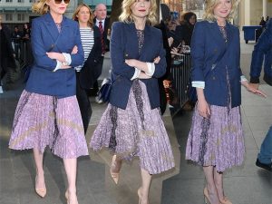 На днях Кирстен Данст прилетела в Лондон. Она посетила студию радиостанции BBC1 для того, чтобы дать интервью в поддержку своего нового фильма «Специальный полуночный выпуск». Судя по всему, звезда рассчитывала на более «теплый» прием от столицы Соединенного королевства: в отличие от местных жителей, которые предпочитают носить теплые пальто и куртки, Данст сделала выбор в пользу по-весеннему легкого наряда. Актриса дополнила лиловое кружевное платье Gucci темно-синим блейзером и классическими телесными лодочками из лакированной кожи. В надежде на скорую перемену погоды мы решили повторить этот нарочито-небрежный городской образ.