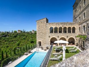 Отель, расположенный на месте старинной крепостной стены в центре одной из красивейших средневековых деревень Франции — Горд, разместился в особняке 18 века. Башня 12 века и сводчатая аркада в стиле романского монастыря отвечают за аутентичность исторической картины, а современные интерьеры отеля с антикварными «цитатами» разных исторических эпох — за тенденции века 21-го: любовь к комфорту и постмодернистское любование стариной. Гастрономические радости обеспечивает ресторан знаменитого Пьера Ганьера, а за телесное отдохновение отвечает спа-центр Sisley. Душа же отдыхает от местных пейзажей: в Горде у стен монастыря раскинулось одно из самых известных лавандовый полей Прованса, здесь же искали вдохновения для своего творчества фотографы и художники со всего мира, в том числе Марк Шагал.