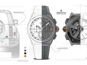 Defy 21 Land Rover Edition появились на свет в результате четырехлетней работы автобренда и знаменитого производителя швейцарских часов. Часы представляют собой полностью пересмотренный хронограф от Zenith с минималистичным и лаконичным дизайном. Выполненные в специальном титановом корпусе, поглощающем свет с любого угла, чтобы максимально подчеркнуть его граненые поверхности, часы приковывают взгляды и в то же время не выглядят слишком броско. Циферблат новинки сочетается с корпусом благодаря матово-серому цвету, существенно отличаясь от стандартных версий Defy 21. Элементы циферблата в оранжевых и белых тонах добавляют четкость и контрастность дисплею. На внутренней стороне часов красуется миниатюрный пятиспицевый колесный диск Land Rover. Как и Defender, доступный с разными пакетами опций, соответствующими запросам владельца, Defy 21 Land Rover Edition можно приобрести с одним из двух ремешков на выбор: резиновым Adventure с рельефной поверхностью или версией Country, представляющей собой серый резиновый ремешок, похожий на тканевый, с оранжевой прострочкой.
