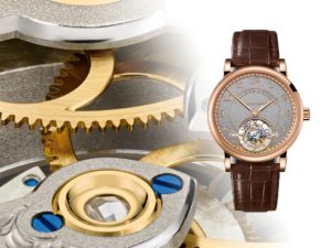 Handwerkskunst в переводе с немецкого означает «художественное ремесло»: такой лейбл A. Lange & Söhne используют с 2011 года для обозначения специальных моделей, выпущенных ограниченными сериями, циферблаты и механизмы которых декорируются с применением редких техник окончательной отделки и гравировки. Лимитированная серия 1815 Tourbillon Handwerkskunst уникальна и с точки зрения отделки, и с точки зрения технической «начинки» благодаря встроенному механизму Zero-Reset, позволяющему выставить время на часах с точностью до секунды.