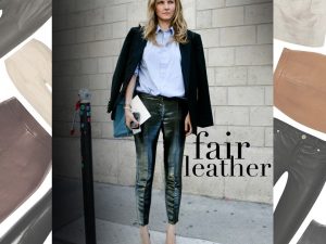 В последнее время в моду входят кожаные брюки свободной посадки, причем найти такие можно как в люксовых брендах, так и в масс-маркете. Носить подобные модели рекомендуется с высоким каблуком (остромодный весенний вариант — с подчеркнуто женственными туфлями или босоножками на шнуровке), casual-топами или заправленными «летящими» блузками. Добавьте к комплекту элегантное пальто, сумку-портфель жесткой формы с короткой ручкой и ремешком, «мужские» часы, бижутерию — уверены, такой образ оценят не только коллеги, партнеры или начальник, но и авторы модных блогов. Вы можете также использовать жакет в стиле милитари, стильный смокинг или актуальный двубортный жилет.
