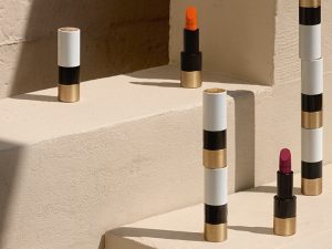 Для весенне-летнего сезона Hermès выпустил три лимитированных оттенка помады — Rose Inouï, Violet Insensé и Corail Fou. Также в линейке есть уходовый бальзам, карандаш для губ, блеск и аксессуары — кисточка из лакированного дерева ручной работы для нанесения помады и футляр для нее же с зеркальцем, плюс круглое зеркало на кожаном ремешке. Текстуры, разработанные в научно-исследовательской косметической лаборатории, расположенной в местечке Водрей в Нормандии, буквально тают на коже, покрывая губы непрозрачной и невесомой «пленкой». В формулу включен экстракт белой шелковицы, как бы намекая на шелковые изделия Дома. Отвечая требованию абсолютной стойкости, микронизированные пигменты в составе матовой помады в очень высокой концентрации, сразу после нанесения оставляют свой след, а формула атласной помады обеспечивает живой и яркий оттенок. Аромат Rouge Hermès придумал парфюмер и «нос» Hermès Кристин Нажель: по его словам, это мечта о нотах сандала, арники и дягиля.