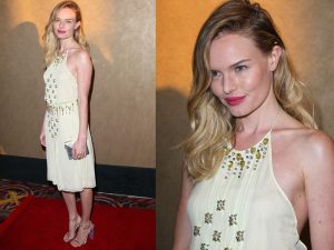 Натуральный макияж, роскошная вышивка на платье Prada и беззаботная улыбка — красавице явно не о чем беспокоиться, ведь даже в новом фильме мамой неожиданно становится не она, а ее лучшая подруга. Так что бойфренду режиссеру Майклу Полишу стоит покрепче держаться за изящную и элегантную красавицу с загадочным взглядом. Кстати, у Кейт левый глаз голубой, а правый наполовину карий — врожденная гетерохромия только добавляет ей шарма!