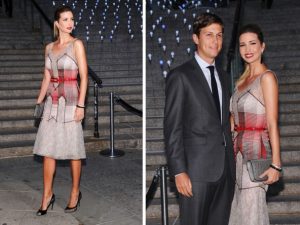 Иванка Трамп появилась с мужем Джаредом Кушнером в том же платье Carolina Herrera, в котором чуть ранее красовалась на вечеринке Alberta Ferretti for Macy’s. Пожалуй, только по-настоящему красивые и стильные женщины могут позволить себе такую вольность в светском обществе!