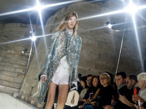 Местом показа стал Лувр — точнее недавно реконструированный Часовой павильон, а декорациями — остатки крепости, возведенной еще в XII веке Филиппом II для защиты Парижа от нападения викингов. Богатое наследие дворца, ныне являющегося одним из наиболее значимых мировых музеев и символом столицы Франции, нашло продолжение в идейной основе коллекции. Вдохновленный экспозицией одежды прошлых веков, представленной в нью-йоркском Метрополитен-музее, Николя Гескьер выпустил на подиум манекенщиц в богатых сюртуках и камзолах, дополненных традиционной униформой жителя современного мегаполиса: спортивными шортами, брюками-дудочками, платьями-тельняшками и неизменными атрибутами «новой жизни» — кроссовками.