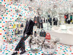 Модный дом Louis Vuitton оформляет свои бутики по всему миру перед запуском капсульной коллекции, созданной совместно с культовой японской художницей Яёи Кусамой. Главный мотив — легендарный кусамовский «горошек», а в коллекции представлены одежда, парфюмерия и аксессуары с фирменным принтом, вдохновленным творчеством 93-летней художницы.