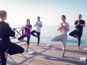- Ходьба по берегу моря с погружением ног в воду на разную глубину для регулирования физической нагрузки. Морская вода позволяет усложнить простую ходьбу, укрепляя мышцы нижних конечностей и делая аэробное упражнение более интенсивным. Для работы верхней части тела можно использовать палки.