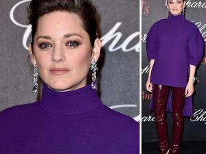 Для вечеринки Chopard и английского клуба Annabel’s, прошедшей в рамках 69-го Каннского кинофестиваля, Марион Котийяр выбрала довольно нестандартный наряд. На фоне других гостей, которые появились на мероприятии в коктейльных платьях, образ звезды сильно выделялся. Актриса надела узкие брюки из лакированной кожи цвета бургундского вина и фиолетовую водолазку с объемными рукавами и длинный шлейфом из коллекции Delpozo сезона осень-зима 2016/17. Дополняли эту яркую комбинацию классические лодочки с заостренным носом и статусные украшения. Мы взяли образ Марион Котийяр на вооружение, решив немного поиграть с текстурами и яркими оттенками в нашей постоянно рубрике Star Look.