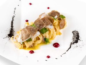 - Паста тальятелле с белым трюфелем, с тальятелле из каракатицы, щавелем и свеклой