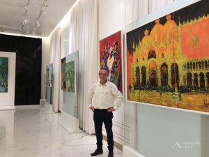 Марк Каплан в окружении своих картин