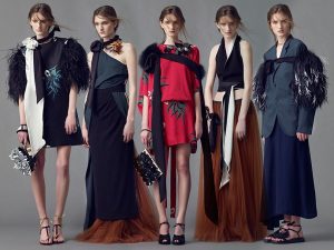 Сложные, многослойные силуэты, буквально «обтекаемые» одеждой, напоминают о работах сюрреалистов, в то время как цветовая гамма — оттенки ночи: от угольно-серого и табачного до размытых синего и зеленого, словно предрассветное небо — отсылает нас к эпохе декаданса. От авангарда — экспериментальный подход к крою и оригинальный декор: принты, изображающие экзотические орхидеи и луноцветы, а также объемные аппликации в виде раскрывающихся бутонов и геометрических конструкций, нашедшие отражение также в бижутерии и других аксессуарах.