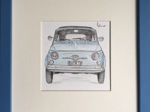 Серию рисунков Fast Art Take Away итальянский художник Массимилиано Робино посвятил автомобилестроительной индустрии свой страны, ставшей в середине прошлого века одной из ключевых вех «итальянского экономического чуда», поднявшего бренд Made in Italy на невероятную высоту. Рисунки созданы от руки один за другим серийным образом — концептуальный жест, передающий смысл конвейера индустриализации, и вместе с тем знак уважения к знаменитым моделям, сумевшим стать «на поток», оставаясь шедеврами промышленного дизайна. Более 50 ярких рисунков изображают лучшие модели производства Fiat, Lancia и Alfa Romeo, а также знаменитые мотороллеры Vespa производства Piaggio.