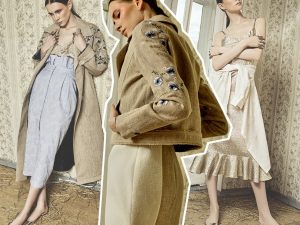 Элегантный стиль жительницы мегаполиса тесно переплетается с очевидными отсылками к цыганскому художественному наследию. От аккуратных деталей (ручная вышивка, крупные пайетки, декоративные бусины) до силуэтов и форм, — общее настроение коллекции воспевает свободный дух цыганской романтики. Символично то, что для ее создания были использованы преимущественно натуральные материалы. Легкий лен, струящийся шелк и хлопок позволили Жене Ким и сёстрам Линович искусно обыграть фактурную стилистику.