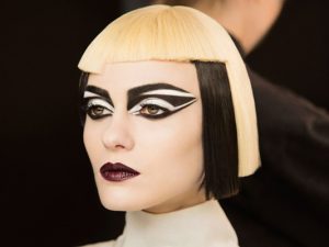 «Образ Дроида был вдохновлен C-3PO, я хотела, чтобы она выглядела по-настоящему красивой — с властными „золотыми“ глазами и губами. Штурмовик — это солдат, поэтому мейкап основан на графичности глаз и структурирован ягодно-темной помадой, — объясняет свою задумку визажист. — Металлическая палитра снова актуальна в этом сезоне, и она идеально вписывается в стилистику фильма. Рискуйте и экспериментируйте с помадой цвета металлик!»
