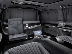 В дизайне салона использовали лакированное дерево, кожу, замшу и текстиль. Фирменный дизайн будет представлен в пяти цветовых решениях: черный, серый, синий, темный шоколад и бежевый. Кроме того, автомобиль от ALEKSANDERSIRADEKIAN имеет в багажном отсеке систему для хранения обуви и аксессуаров, на задней части спинок кресел размещены фирменные пледы, а над ними зафиксированы удобные плечики для верхней одежды. Для самых взыскательных — к каждому креслу готов комплект фирменных тапок AS.