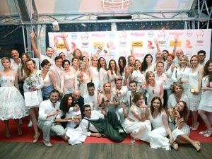 Гости приходили в белом, как того требовал дресс-код, радовались, веселились, поздравляли друг друга, пили вино (оно, кажется, лилось рекой), закусывали пирожками. Казалось, откуда-то с самого Черного моря, где совсем недавно проходил «Кинотавр», сюда, в вечно спешащую куда-то Москву, перенеслась легкая, ни к чему не обязывающая атмосфера курортного отдыха.