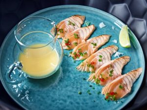 Шеф-повар настоятельно рекомендует «пройтись» и по разделу с сырыми морепродуктами, про которые он рассказывает почти с любовью: мясистые сахалинские гребешки, большие креветки ботан, которые подаются вместе со своей икрой глубокого изумрудного цвета, сладковато-йодистые аргентинские креветки с соусом spice-lemon, тартар из лосося с авокадо на гриле. Заказать тартар, к слову, стоит уже ради одного только соуса: соусы вообще играют важную роль в концепции ресторана, требуют особого внимания и осознанного подхода. Шеф-повар проработал немало сочетаний и вкусов: спирулина, свекольный айоли и свекольный же терияки, соус из водорослей и апельсина, соус из маракуйи, вишневый BBQ — каждое блюдо дополнено одним или двумя.