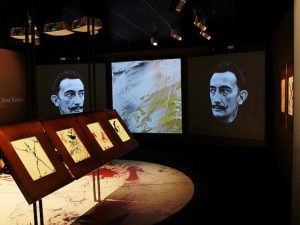 Все эти «божественные кляксы» можно в подробностях рассмотреть на первом этаже музея, причем не только на оригинальных литографиях, но и на видеопроекциях на полу и стенах. В названии этой части экспозиции, «400 лет в боях и сражениях», слышатся и металлический лязг оружия странствующего рыцаря, и отзвуки разбивающихся и растекающихся краской свинцовых пуль Дали.