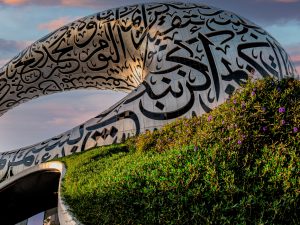 Здание Museum of the Future расположено на главной магистрали города — шоссе Sheikh Zayed Road, а основная экспозиция и иммерсивный театр посвящены потенциалу развития технологий. Кроме того, здесь находится штаб-квартира национального проекта Great Arab Minds, задача которого — собрать коллегию из тысячи талантливых арабских ученых в разных областях науки, дав старт прекрасной эпохе будущего. В центре внимания — космические разработки, ИИ, инновации в сфере сохранения климата и образовательные проекты.