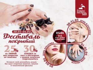 с «визитной карточки»: с 29 марта сеть салонов маникюра Express Nails целую неделю все виды покрытий предоставляет со скидкой до 30%.