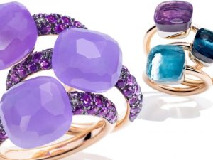 Ювелирные истории Pomellato «рассказывает» так, будто передает историю страстной любви. Коллекция Pomellato Capri версии 2013 года — умиротворенный отдых в «лавандовых» кольцах и «цветочных серьгах» с христопазами.Colpo di Fulmine — романтичная завязка отношений: контрастные сочетания аметиста, рубина, топаза «Лондон блю», цаворита, граната и синего сапфира обещают яркое продолжение. Ажурные украшения Pomellato Gold — зрелые отношения влюбленной пары: крупные и заметные серьги из матового розового золота благодаря ажурному рисунку и сужающейся форме серьги остаются легкими, а отношения — непринужденными.