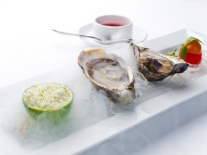 Из других новинок осеннего меню, которые пришлись нам по вкусу: «Лосось с красной икрой и томатным жемчугом», с зеленым бисквитом с добавлением эстрагона, базилика и красной икры, и «T-bone» из телятины с ароматным картофельным пюре и сливочным соусом «Белые грибы».