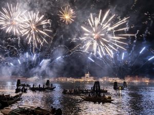В Венеции рекомендуем действовать, как венецианцы. Наступление 2020 года по традиции встречать на площади Сан-Марко, кататься на гондолах (подумаешь, холодно, вы же в Венеции!), отогреваться в легендарных кафе и не забывать про культурную программу. Жаль, что Венецианский карнавал стартует только 8 февраля, а то было бы вообще сказочно! Итак, в новогоднюю ночь местные жители и гости Венеции в едином порыве собираются на Сан-Марко, чтобы в полночь услышать бой часов на почти 100-метровой Кампаниле собора Святого Марка, обменяться самыми искренними пожеланиями успеха и всего самого наилучшего в будущем году, поцеловаться и зажечь пару-другую петард. Чтобы гарантированно получить место в пестрой и многонациональной толпе, рекомендуем прийти заранее. Часа за три до торжественного часа Х. Если стоять в толпе вам не по душе — к вашим услугам мост Риальто!