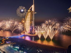 Главный фейерверк в Дубае — невероятное световое шоу планируется на острове Пальма Джумейра: тут каждый год получаются одни из самых красивых кадров! Фестиваль Hatta, который весь декабрь балует город россыпью фейерверков на любой вкус и цвет, в канун Нового года устроит настоящее шоу огней. А еще в полночь организует салют Burj Al Arab — самый известный отель Дубая.