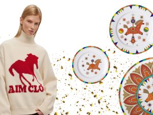 Многие бренды подготовили специальные изделия в тематике Нового года. Представьте уютный свитер от Aim Clo с мягкой пряжей и праздничной вышивкой; зонт от Leffers с фантазийным рисунком, созданным Ольгой Лефферс вместе с нейросетью; или легкий шелковый платок от Radical Chic, где по ткани скачет целый табун ярких лошадок. А для тех, кто верит в символы, — изящное золотое кольцо с бриллиантом от Yana Jewellery в форме миниатюрной подковы, будто специально созданное, как талисман на удачу.