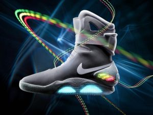 Например, «умные» самозашнуровывающиеся кроссовки — то, что в 1980-х годах казалось фантастикой, сегодня — реальность, воплощенная при помощи инновационного отдела компании Nike. Помимо датчика веса, отвечающего за автоматическую шнуровку ботинка, Nike Mag обладают подсветкой, а сам дизайн в точности повторяет кинематографический «прототип». Стоимость модели пока не разглашается, так же как и дата начала продаж. Однако то, что путешествие Марти МакФлайя началось 21 октября 2015 года, наводит на мысль, что тогда же кроссовки поступят на прилавки магазинов — если не всего мира, то точно Америки.