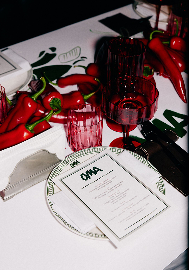 Повод собраться: Ресторатор Михаил Гохнер, на безупречных стейках которого в легендарном «Эль Гаучо» сформировало свой вкус не одно поколение, открыл в Большом Патриаршем переулке стейк-хаус баскской школы ОМА. Кульминацией ужина стали стейки, которые готовили на открытой кухне прямо в зале, сдерживая живой огонь тяжелой решеткой асадора.