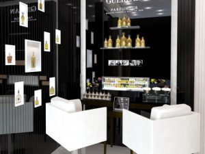 Пространство корнера поделено на три зоны: зона эксклюзивной парфюмерии Guerlain, в которой можно найти любой из существующих на данный момент ароматов Дома, а также редкие ароматы и ограниченные версии легендарных ароматов, макияжная зона, где гости Guerlain смогут познакомиться с самыми последними новинками и коллекциями декоративной косметики и получить советы визажиста, и зона средств по уходу за кожей.