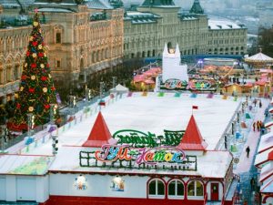 В первый день зимы у стен Кремля по традиции открылись ГУМ-каток и рождественская ярмарка.