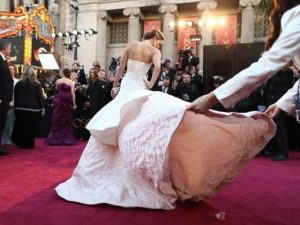 Дженнифер Лоуренс (в Dior) могла бы провести на церемонию пару гостей «без билета» под таким подолом