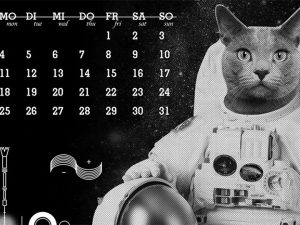 Календарь на 2020 в исполнении бразильца — ода ризографической печати в стиле 60-х и подарок всем поклонникам космоса в честь 50-летия миссии «Аполлон-11». На минималистичных рисунках — котики разных пород, том числе русская голубая кошка — смотрите май месяц.
