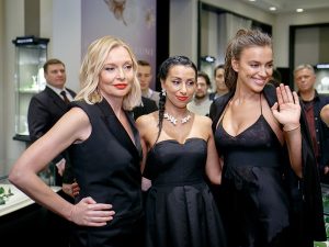 Пообщаться с Бруни и посмотреть на новую коллекцию собрались многочисленные гости VFNO. Приглашенная звезда Vogue Fashion’s Night Out Ирина Шейк также заглянула на коктейль — свой образ топ-модель дополнила браслетом из розового золота с бриллиантами из коллекции Petit Garden.