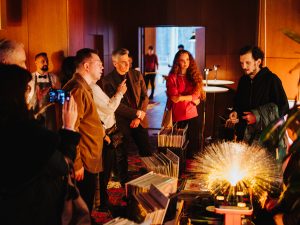 Повод собраться: Открытие выставки «Условия материальной независимости» куратора Анны Наринской, художников Ивана Лунгина и Евгении Ржезниковой и дизайнера Игоря Гуровича. Создатели разбирают мифологию легендарного Городка писателей на отдельные метафоры — зависть, детство, любовь, убежище, смерть — в 8 комнатах-пеналах в старом корпусе Дома творчества. К открытию поэт Лев Рубинштейн перевоплотился в советского писателя, режиссер Алиса Кретова собрала выпускников Мастерской Брусникина для участия в перформансах, а за музыкальную программу отвечал Илья Рубинштейн. К открытию выставки заработал бар-буфет, восстановленный вместе с Игорем Ланцманом, кроме того, все гости в этот вечер воспользовались трансфером от партнера вернисажа — Ultima Яндекс Go.