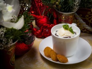 31 декабря гастрономическую программу вечера составят: осьминог на гриле с картофельным кремом с марсалой и красной икрой; тар-тар из говядины с баклажанной икрой и кремом из сыра каприно. Далее последует итальянская классика с авторским подходом: паста с арагостой, спаржей и ароматом водки, и ризотто с перепелкой. Кульминацией гастрономического торжества станут авторские рецепты шеф-повара, оригинальные как по вкусу, так и по подаче: филе трески темпура с мидиями и соусом из петрушки, филе ягненка с соусом демиглас, вешенками и глазированными каштанами, а также — праздничный торт!