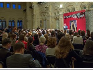 В том самом зале, где когда-то брюки Андрея Миронова «легким движением руки» превращались в шорты, колонки авторов «Русского пионера» действительно легко превращались в живые яркие выступления.