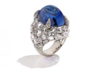 В таких украшениях действительно можно управлять миром! Великолепный танзанит глубокого синего цвета царственно возвышается над россыпью бриллиантов: его заметно издалека, так что с ним вам открыты все двери. А белое золото искусно оттеняет драгоценный камень, как вас — ваша свита.