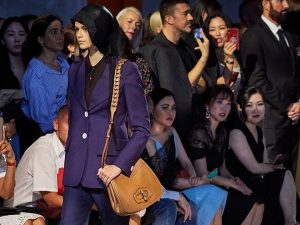 Дизайнер черпала вдохновение в винтажной моде, используя ее элементы в современных интерпретациях: от 1910-1920-х годов были силуэты платьев и головные уборы, 1940-е были представлены элегантными костюмами и пальто, юбки и блузки с оптическими принтами отсылали к 1950-м, а рубашки-поло и жакеты с широкими лацканами — к 1970-м годам. Коричнево-черно-белую палитру разбавляли «чистые» оранжевый, голубой и лавандовый, а ярким акцентом выступал золотой цвет, привнесший в мрачноватую атмосферу показа настроение праздника. Лаконичный городской стиль, который легко впишется в гардероб работающей женщины, нейтрализовали летящие сарафаны на завязках, крупная бижутерия (колье из крупных раковин — абсолютный must!) и флористические вышивки, напоминавшие ветку папоротника. Растительные мотивы переливались деликатным блеском мелкого бисера и более откровенным — пайеток, сумки украшали кристаллы и пряжки, асимметричные шляпы были пошиты из экокожи, а обувь варьировалась от фигурных босоножек, напоминавших сандалии греческих богинь, до мокасинов и брогов на платформе.