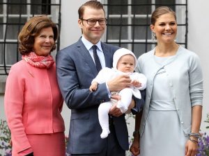 Королева Швеции Сильвия, принц Даниэл с дочкой Эстелль на руках и крон-принцесса Виктория