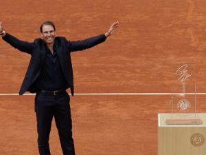 На Открытом чемпионате Франции состоялась церемония чествования Рафаэля Надаля, завершившего карьеру в 2024 году. Рекордсмен «Ролан Гаррос» по количеству титулов в одиночном разряде (целых 14), 22-кратный чемпион турниров «Большого шлема» и обладатель двух золотых медалей Олимпийских игр приехал на корт Филиппа Шатрие для красивого приема — а его гостями стали его легендарные соперники — Новак Джокович, Роджер Федерер и Энди Маррей. Теперь отпечаток следов легендарного испанца на грунте, выполненный белой краской, останется на этом корте навсегда.